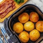 Delicious and easy Air Fryer Breakfast Bites made with crispy bacon, fluffy scrambled eggs, shredded cheddar, and diced green chiles all wrapped in flaky biscuit dough. Perfect for a quick and satisfying breakfast or snack cooked quickly and effortlessly in the air fryer.