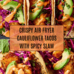 Keywords: air fryer cauliflower tacos, vegan tacos, crispy cauliflower, plant-based tacos, homemade pickled slaw, sriracha mayo, healthy tacos
