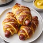 These Air Fryer Pretzel Dogs feature soft homemade pretzel dough wrapped around juicy hot dogs, boiled briefly in baking soda water for that signature pretzel texture, and then air fried to a golden brown. Perfectly salty and chewy, they make a delicious snack or meal with a fraction of the oil used in traditional frying methods.