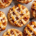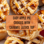 Delight in these charming Apple Pie Cookies, featuring a flaky pie crust filled with spiced apple pie filling and a drizzle of caramel, all topped with a decorative lattice crust and sparkling sugar. Perfectly baked to golden brown, these cookies bring the comforting flavors of classic apple pie into an easy-to-eat, handheld treat.