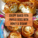 Baked Feta Phyllo Bites with sesame and honey are a delightful combination of flaky, buttery phyllo, savory feta, and sweet honey. These bite-sized treats make an impressive appetizer or snack that’s surprisingly easy to prepare.