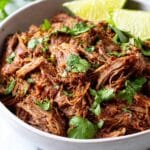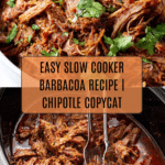 Keywords: barbacoa, chipotle barbacoa, slow cooker barbacoa, shredded beef, Mexican beef recipe, chipotle chile, adobo sauce, beef brisket recipe, beef chuck roast recipe, slow cooker recipes