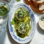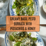 Basil Pesto Burrata is a fresh and flavorful appetizer that combines creamy burrata cheese with a vibrant, nutty basil pesto. It’s perfect for a simple yet impressive starter, served alongside toasted baguette slices and a drizzle of honey.