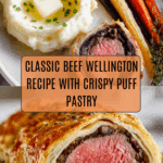 Beef Wellington is a classic and elegant dish featuring a tender beef tenderloin wrapped in layers of mushroom duxelles, prosciutto, and flaky puff pastry. This impressive meal is perfect for special occasions or a decadent dinner that will wow your guests.