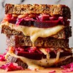 This Beet Reuben Sandwich offers a vibrant twist on the classic Reuben by using tender, spiced beets instead of corned beef. Layers of Swiss cheese, sauerkraut, and tangy Russian dressing are sandwiched between toasted rye bread, creating a rich, flavorful vegetarian alternative that’s perfect for lunch or a comforting dinner.