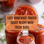 Keywords: homemade tomato sauce, tomato sauce recipe, Italian tomato sauce, slow-simmered sauce, basil tomato sauce, easy tomato sauce