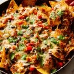 This Black Bean Sweet Potato Taco Skillet is a hearty and flavorful one-pan meal combining tender sweet potatoes, black beans, diced tomatoes, and bold spices, topped with crunchy tortilla chips and melted Mexican cheese. Perfect for a quick and satisfying weeknight dinner, it brings together comforting textures and zesty flavors with a cheesy broiled finish.