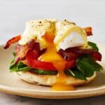BLT Eggs Benedict is a delightful twist on the classic brunch favorite, combining the smoky sweetness of maple-glazed bacon with fresh tomato and peppery arugula. Topped with perfectly poached eggs and a spiced hollandaise, this recipe offers a flavorful and elegant way to start your day.