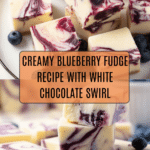Keywords: blueberry fudge, white chocolate fudge, no bake fudge, blueberry dessert, marbled fudge, holiday fudge recipe