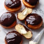Keywords: Boston Cream Donuts, fried donuts, pastry cream filling, chocolate ganache, homemade donuts, classic dessert