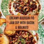 This easy no-bake Boursin Dip is a flavorful and elegant appetizer that combines creamy herbed cheese with sweet fig jam, crispy bacon, and toasted walnuts. Perfect for entertaining, this spread is quick to prepare using a food processor and requires no cooking beyond toasting the nuts, making it a stress-free addition to any party platter.