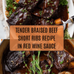 Keywords: braised beef short ribs, beef ribs recipe, red wine braised ribs, slow cooked ribs, Dutch oven ribs, comfort food beef