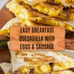 Keywords: breakfast quesadilla, scrambled eggs, breakfast sausage, easy breakfast recipe, cheesy quesadilla