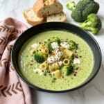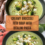A creamy and comforting Broccoli Feta Soup featuring tender broccoli and potatoes blended to a perfect consistency, enriched with savory feta cheese and complemented by ditalini pasta for a hearty, satisfying meal.
