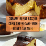 Keywords: Burnt Basque Cheesecake, Corn Cheesecake, Basque Burnt Cheesecake, Sweet Corn Dessert, Salted Honey Corn Caramel, Rustic Cheesecake