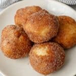 - Step 7: When golden brown, remove from oil and immediately roll in the cinnamon sugar mixture until fully coated.