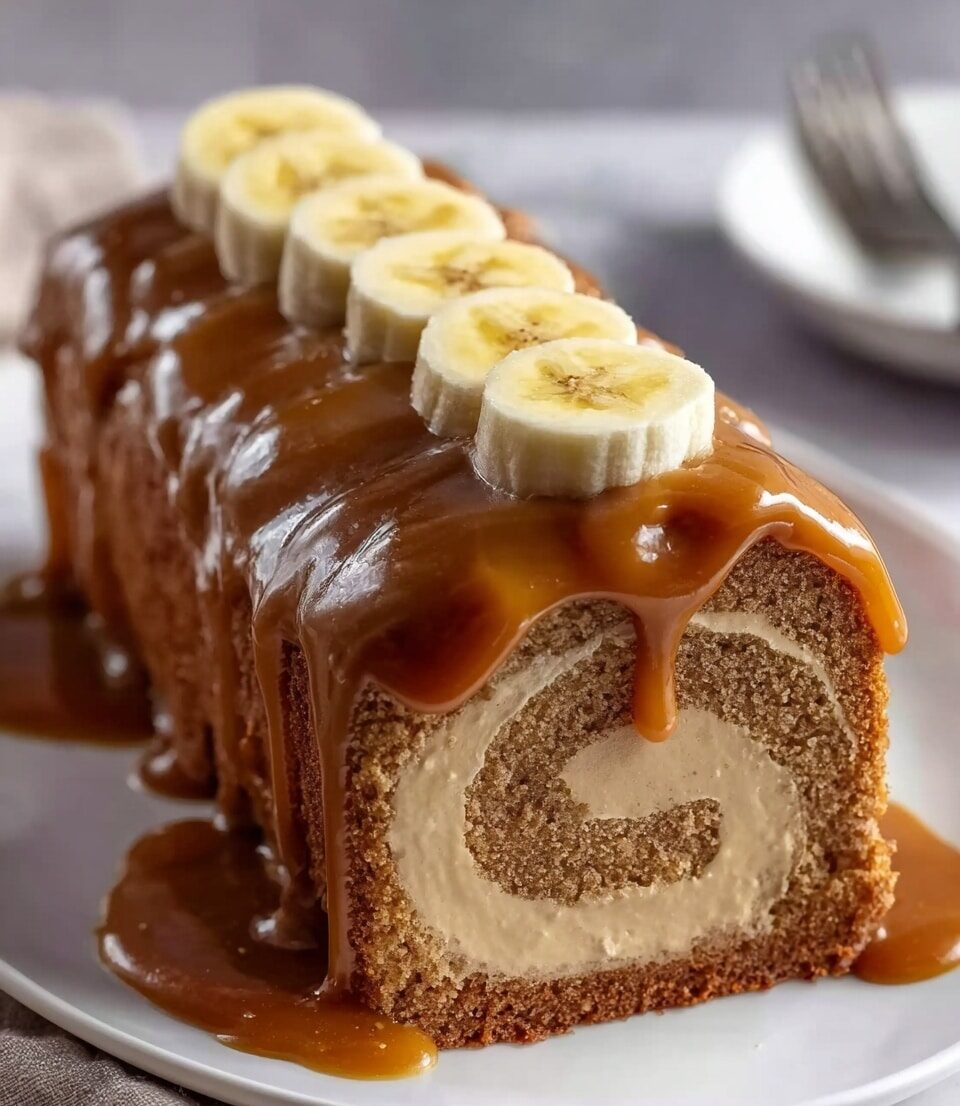 - Chill and Serve: Refrigerate the rolled cake for at least 30 minutes to set the caramel. Slice and serve, optionally garnished with extra caramel sauce, whipped cream, or sliced bananas.
