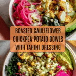 These Cauliflower Chickpea Potato Bowls are a vibrant and nourishing meal packed with roasted vegetables, fresh greens, and a creamy tahini dressing. Perfect for a wholesome lunch or dinner, they offer a satisfying blend of textures and flavors that are both comforting and refreshing.