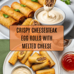 These Cheesesteak Egg Rolls are a crispy, savory twist on the classic Philly cheesesteak. Thinly shaved ribeye steak is cooked with onions and melted cheese, then wrapped in egg roll wrappers and deep-fried to golden perfection. Served hot with your favorite dipping sauces, these egg rolls make an irresistible appetizer or snack.