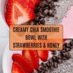 A nutritious and delicious Chia Smoothie Bowl featuring a creamy blend of chia seeds soaked overnight, Greek yogurt, fresh strawberries, honey, and topped with chocolate chips and extra chia seeds. Perfect for a healthy and satisfying breakfast or snack.