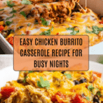 This Chicken Burrito Casserole is a comforting, flavorful dish that’s perfect for busy weeknights. Layers of shredded chicken, beans, rice, and cheese come together with a zesty enchilada sauce for a satisfying meal the whole family will love.
