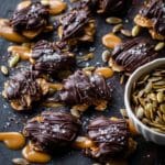 These Chocolate Covered Roasted Pumpkin Seed Turtle Clusters are a delightful treat combining crunchy roasted pumpkin seeds, sweet caramel, toasted pecans, and rich chocolate. Perfect as a homemade snack or gift, they offer a delicious balance of salty, sweet, and nutty flavors in each bite.
