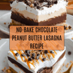 Chocolate Peanut Butter Lasagna is a no-bake dessert that layers rich peanut butter cream, chocolate pudding, and whipped topping over a crunchy cookie crust. This indulgent treat combines classic flavors for a decadent and easy-to-make dish perfect for any occasion.