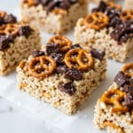 Keywords: rice krispie treats, chocolate pretzel treats, vegan dessert, dairy-free, marshmallow treats, salty sweet snack
