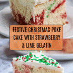 Keywords: Christmas cake, poke cake, holiday dessert, gelatin cake, festive cake, pudding topping, strawberry gelatin, lime gelatin, whipped topping