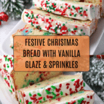 Keywords: Christmas bread, holiday bread, festive bread, sprinkle loaf, vanilla glaze, cinnamon bread, Christmas dessert
