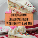 This whimsical Circus Animal Cheesecake combines the playful flavors of Funfetti cake and buttery animal cookies with rich, creamy cheesecake layers. Featuring colorful pink and white swirls, and topped with whipped cream and festive confetti sprinkles, it’s a delightful dessert perfect for celebrations and those who love a fun twist on classic cheesecake.