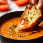 This classic Gazpacho recipe is a refreshing, cold Spanish tomato soup perfect for hot summer days. Made from ripe tomatoes, cucumber, red bell pepper, garlic, red onion, olive oil, and sherry vinegar, this chilled soup is blended to a silky smooth texture and garnished with diced cucumber and a drizzle of olive oil. Serve it with crusty bread for a light, healthy meal.