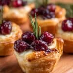 These Cranberry Brie Bites are irresistible bite-sized appetizers featuring flaky crescent dough filled with creamy brie cheese, topped with tangy whole berry cranberry sauce and a hint of fresh rosemary. Perfect for holiday gatherings or any festive occasion, they bake to a beautiful golden brown for a warm, cheesy, and fruity treat that’s both elegant and easy to prepare.