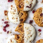 - If you don’t want to dip the cookies in white chocolate, you can drizzle it over the top or omit entirely.