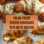 Deliciously flaky croissants stuffed with a creamy herb-infused cream cheese filling, topped with melty Gruyere cheese and baked to golden perfection. Perfect for a savory breakfast treat or elegant snack.