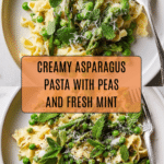 Keywords: creamy asparagus pasta, spring pasta recipe, peas and mint pasta, vegetarian pasta dish, easy Italian pasta