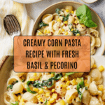 Keywords: corn pasta, creamy pasta, summer pasta recipe, Italian vegetarian pasta, fresh corn recipe, pecorino pasta, easy dinner, basil pasta