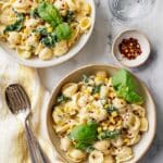 Keywords: corn pasta, creamy pasta, summer pasta recipe, Italian vegetarian pasta, fresh corn recipe, pecorino pasta, easy dinner, basil pasta