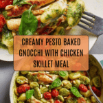 Keywords: pesto chicken gnocchi skillet, baked gnocchi recipe, creamy pesto chicken, one-pan chicken dinner, Italian skillet recipes