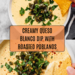 Keywords: queso blanco, cheese dip, roasted poblano peppers, Mexican cheese sauce, creamy queso
