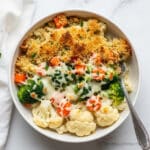 This Creamy Winter Vegetable Casserole is a comforting and hearty dish perfect for chilly days. Packed with nutritious winter vegetables like carrots, parsnips, cauliflower, and Brussels sprouts, it features a rich and creamy base made from low-fat cream of mushroom soup and milk, topped with a crispy buttery breadcrumb crust. Easy to prepare and bake, this casserole offers a flavorful and satisfying way to enjoy seasonal veggies.