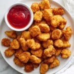 This crispy and flavorful Popcorn Chicken recipe features bite-sized pieces of tender chicken breast marinated in a sour cream and milk mixture, then coated in a seasoned panko breadcrumb and flour mixture before being perfectly deep-fried to a golden brown. The result is a crunchy, juicy treat perfect for snacking or as a delicious appetizer.