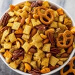 - Cool and Serve: After cooking, spread the Chex Mix onto a baking sheet to cool completely. Once cooled, transfer to a serving bowl and enjoy your savory snack.
