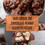 Keywords: Chocolate peanut clusters, crock pot dessert, holiday treats, peanut clusters, slow cooker candy, chocolate bark clusters