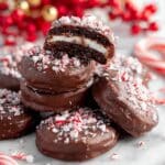 Delight in these festive Dark Chocolate Covered Peppermint Sandwich Cookies, featuring rich cocoa cookies sandwiched with a creamy peppermint filling and coated in decadent semi-sweet chocolate infused with peppermint. Perfect for holiday gatherings or a refreshing treat.