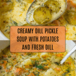 Keywords: Dill Pickle Soup, pickle soup, sour cream soup, potato soup, vegetarian soup, dill recipe, comforting soup