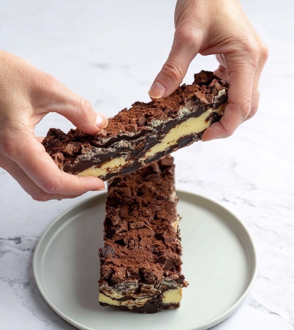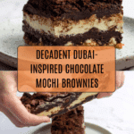 This Dubai chocolate-inspired brownie recipe combines rich dark chocolate brownie layers with a unique mochi middle and a crunchy pistachio cornflake layer. The chewy mochi adds an unexpected texture, while the pistachio spread mixed with toasted cornflakes provides a nutty crunch. Baked to perfection, this innovative dessert blends classic favorite flavors with Middle Eastern and Asian influences to delight every chocolate lover.