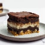 This Dubai chocolate-inspired brownie recipe combines rich dark chocolate brownie layers with a unique mochi middle and a crunchy pistachio cornflake layer. The chewy mochi adds an unexpected texture, while the pistachio spread mixed with toasted cornflakes provides a nutty crunch. Baked to perfection, this innovative dessert blends classic favorite flavors with Middle Eastern and Asian influences to delight every chocolate lover.