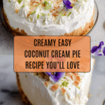 This Easy Coconut Cream Pie features a buttery cookie crust with toasted coconut, filled with a rich and creamy coconut custard, topped with fluffy whipped cream and toasted coconut flakes for added texture and flavor. Perfect for coconut lovers seeking a simple yet indulgent dessert.