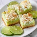 Keywords: Coconut lime bars, easy lime dessert, baked lime bars, toasted coconut topping, tropical dessert bars